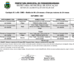 Cardápio A Outubro 2021 sem carnes Cardápio B1 Outubro 2021 Cardápio B2 e B3 Outubro 2021 CMEI Ma Apda e CMEI Marli Cardápio B2 e B3 Outubro 2021 sem carnes Cardápio E TIC TAC Outubro 2021 sem carnes