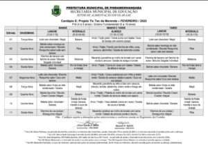Cardápio E Projeto Tic Tac – Fevereiro 2022