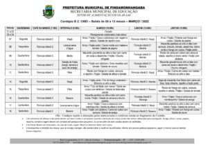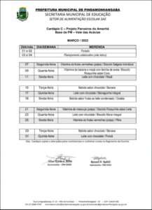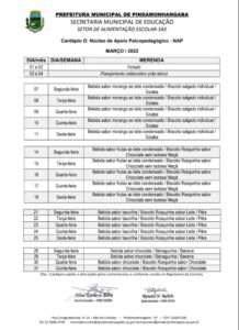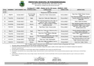 Cardápio A Parcial – Março 2022 Cardápio B1 – Março 2022 Cardápio B2 – Março 2022 Cardápio B3 – Março 2022 Cardápio C – Março 2022 Cardápio D – Março 2022 Cardápio E Projeto Tic Tac – Março 2022
