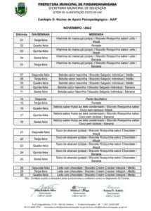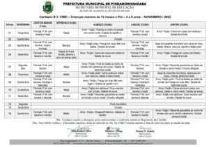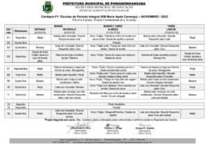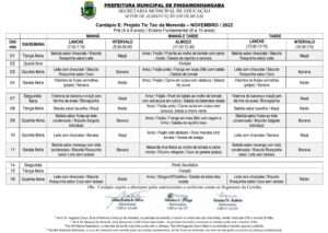 Cardápio E Projeto Tic Tac – Novembro 2022