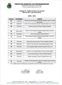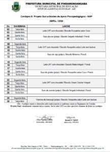 Cardápio A Parcial – Abril 2024 Cardápio B2 – Abril 2024 Cardápio B3 – Abril 2024 Cardápio C Integral Ribeirão – Abril 2024 Cardápio C Integral – Abril 2024 Cardápio D – Abril 2024 Cardápio E – Abril 2024