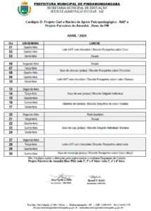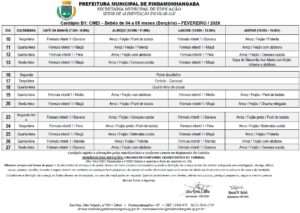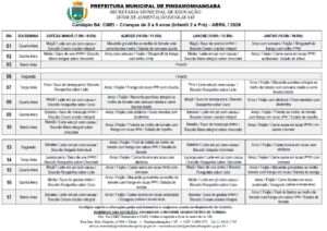 Cardápio A Parcial – Abril 2026 Cardápio B1 – Abril 2026 Cardápio B2 – Abril 2026 Cardápio B3 – Abril 2026 Cardápio B4 – Abril 2026 Cardápio C Integral – Abril 2026 Cardápio D – Abril 2026
