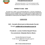 Portaria Geral 6786-2025 Recomposição do CAE mandato 2022-2026 Portaria 5850_2022 Nomeação Conselheiros CAE 2022-2026 Lei de Criação do CAE 3773-2001 Lei 5867-20215 Altera a Lei de criação do CAE 3773-2001 Edital-10335 - 17-09-2025 - Portaria Geral nº 6786-2025 - Nova composição do CAE Edital-10318 - 15-08-2025 - Publicação dos inscritos para a eleição Edital-10310 - 01-08-2025 - Edital de convocação - Recomposição do Conselho Decreto 5368-2016 Homologa Regimento Interno do CAE CARTAZ_CAE_2022_2026 atualizado Cartaz para Rede Municipal -2024 CAE Edital-10364 - 11-11-2025 - Edital de Convocação para a 2ª Reunião Ordinária