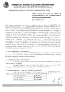 Plano de Trabalho - CMEI Valdira Plano de Trabalho - CMEI Therezinha Plano de Trabalho - CMEI “ARARETAMA” Plano de Trabalho - CMEI “CRISPIM” Plano de Trabalho - CMEI "Cidade Nova" Plano de Trabalho - CMEI Durvalino dos Santos Termo de Colaboração - CMEI Valdira e Therezinha Termo Aditivo - CMEI Valdira e Therezinha Termo Aditivo - CMEI “ARARETAMA” Termo Aditivo - CMEI "CRISPIM" Termo Aditivo - CMEI "Cidade Nova" Termo Aditivo n° 01/2024
